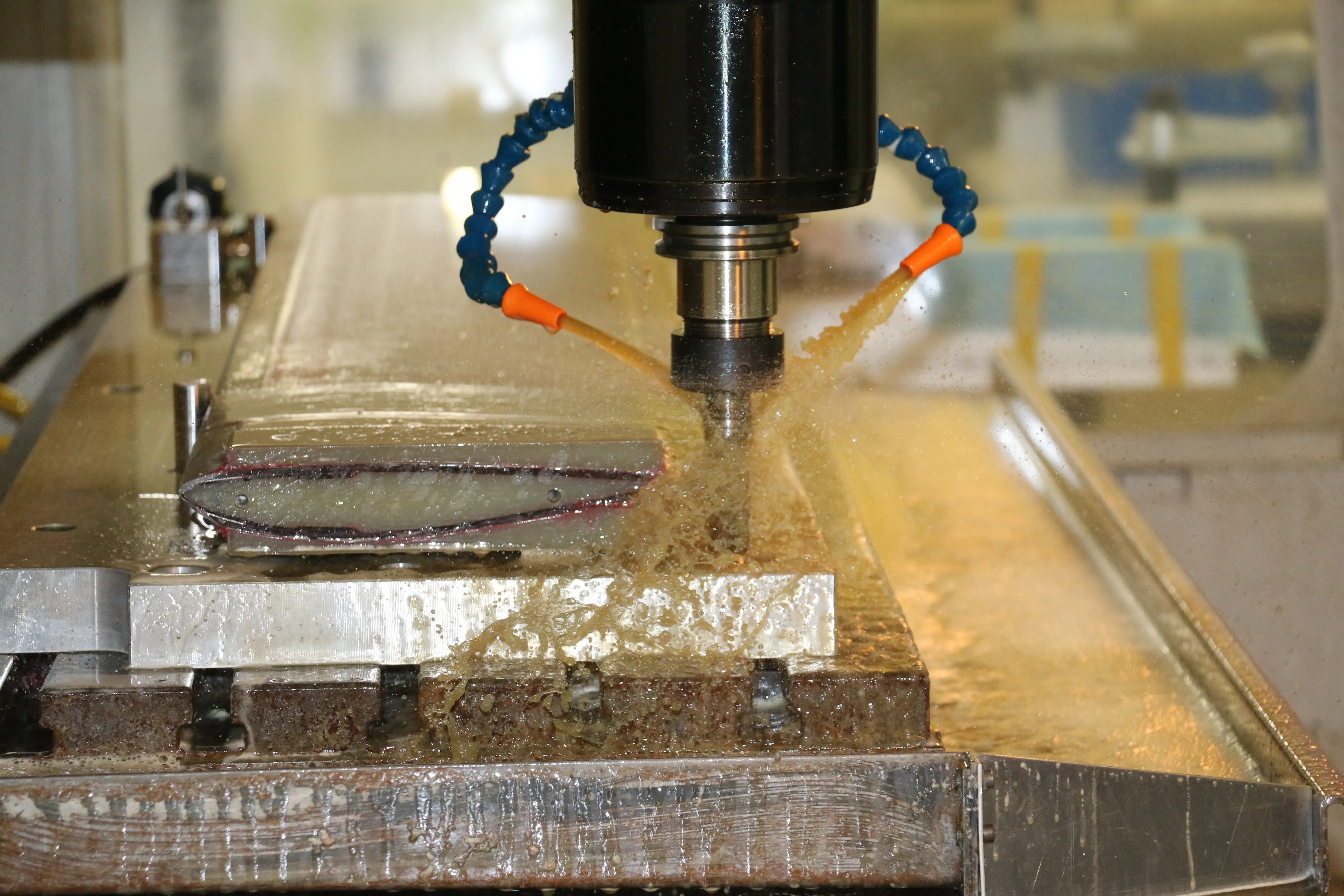 The Machining Department produces the majority of in-house manufactured parts using a variety of precise tooling and computer-controlled machines. From raw materials such as tungsten, titanium, aluminum, and fiberglass block, our machining personnel create essential components used in our rotor blades. Our machinists also develop the computer programs required to create specific parts. Using computer-controlled machining ensures that every instance of every component is manufactured to exact specifications with closely controlled machine tolerances.